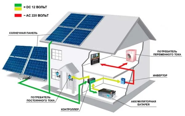 - К солнечным батареям прилагается специальный инвертор, способный преобразовывать ток из постоянного в переменный.