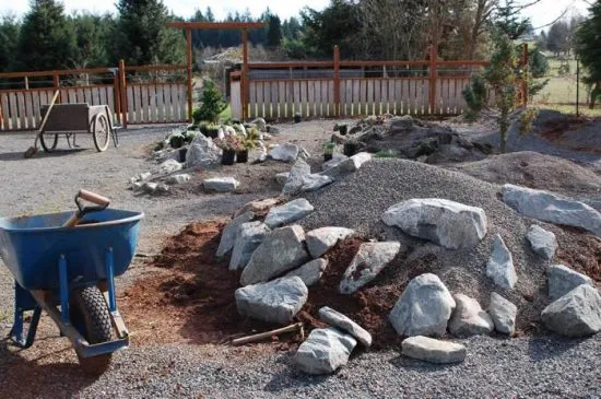 На выбранном участке готовят основание под каменистый сад, используя пошаговую инструкцию и фото: