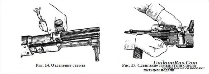Принцип разборки прост: сначала изделие следует избавить от боезапаса, чтобы случайно не выстрелить, потом отделяются подвижные детали, затем неподвижные.