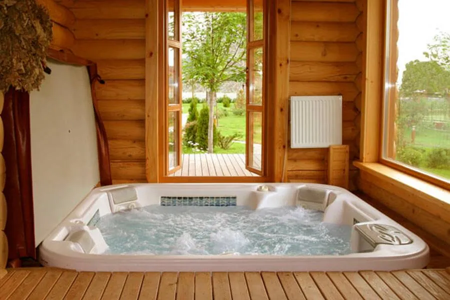 Джакузи — это небольшой круглый или овальный бассейн с гидромассажными форсунками. Он обычно устанавливается в спа-центрах, отелях или домах для отдыха.