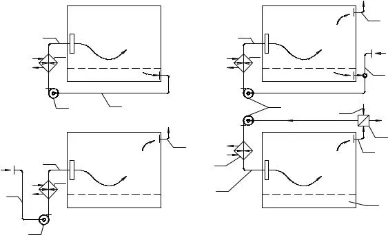 В схеме на рисунке 10.2, а нагретый воздух по специальным каналам распределяется по помещениям, а охладившийся воздух по другим каналам возвращается для повторного нагревания в теплообменнике – калорифере. Совер-