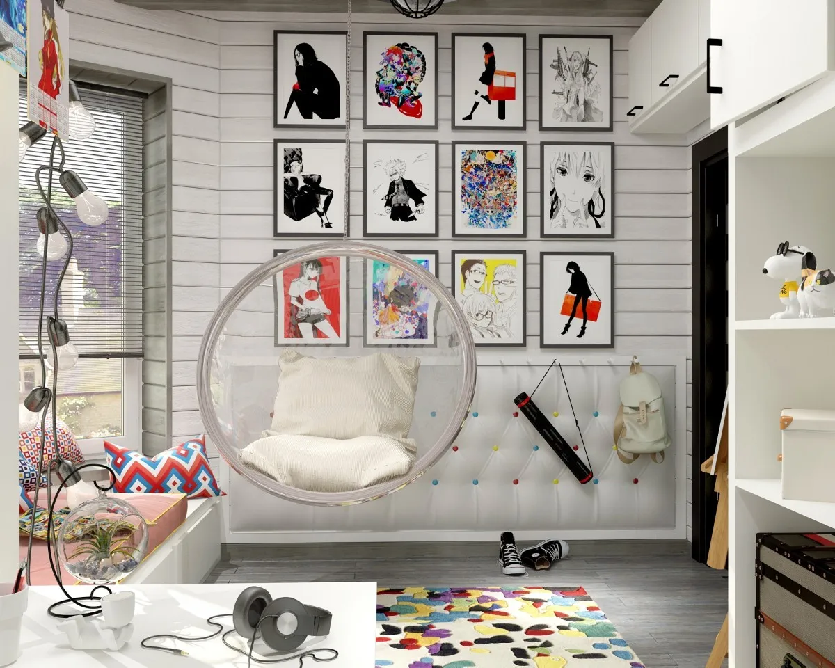 Для социализации девушки ей нужно позволять периодически приглашать к себе друзей. Чтобы создать укромный уголок для встреч, можно поставить несколько мягких или подвесных кресел, добавить стильный ковер и телевизор.