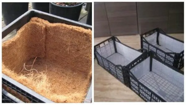 Они приветствуются на участках небольшой площади. При наличии пластиковых ящиков возвести подобное сооружение, будет не так уж и сложно. Конечно, здесь есть свои нюансы в виде выбора вкладыша для сохранения влаги, но они легко решаются. Для этих целей можно использовать кокосовое полотно, полиэтиленовую пленку, мелкую сетку и др.