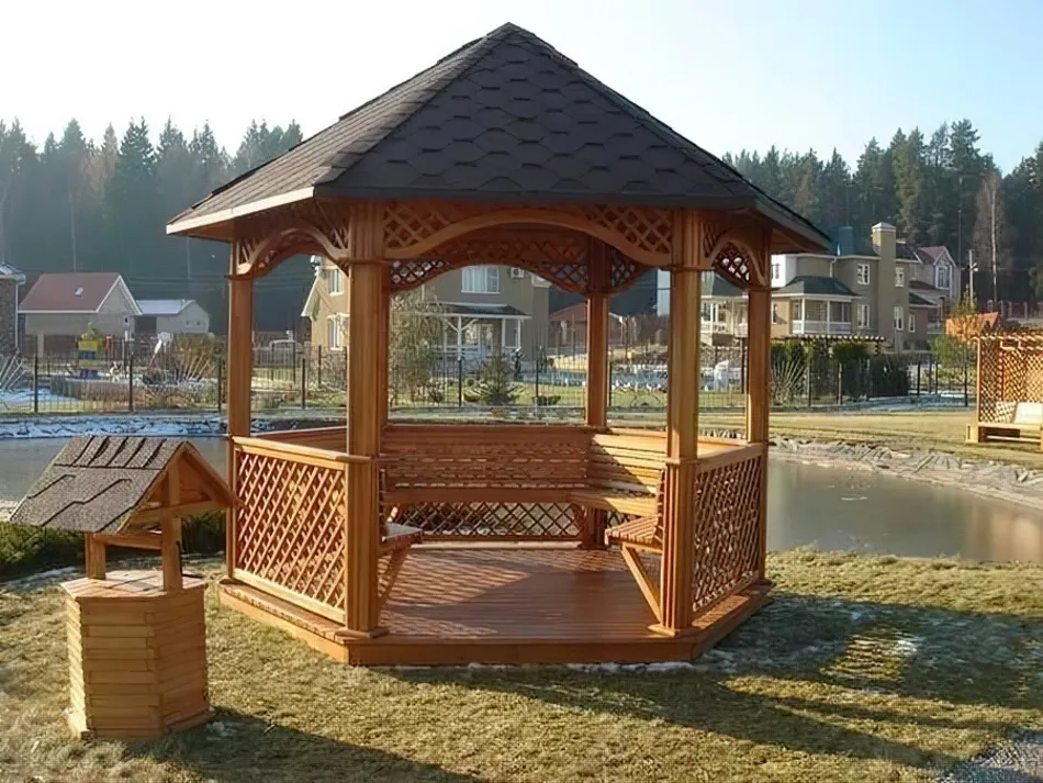 Особенности установки деревянной беседки. Беседка своими руками из дерева — выбор пиломатериала и ее стили. Самостоятельное возведение деревянной беседки. Фундамент и стены для деревянной беседки. Как делается кровля для деревянной беседки.