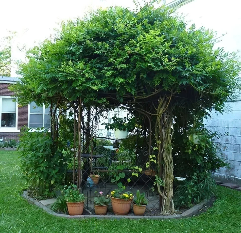 Глициния. Это быстрорастущее растение с длинными ветвями, которое может заплести беседку за несколько лет. Глициния обычно цветет к концу весны или началу лета и создает красивый цветущий туннель.