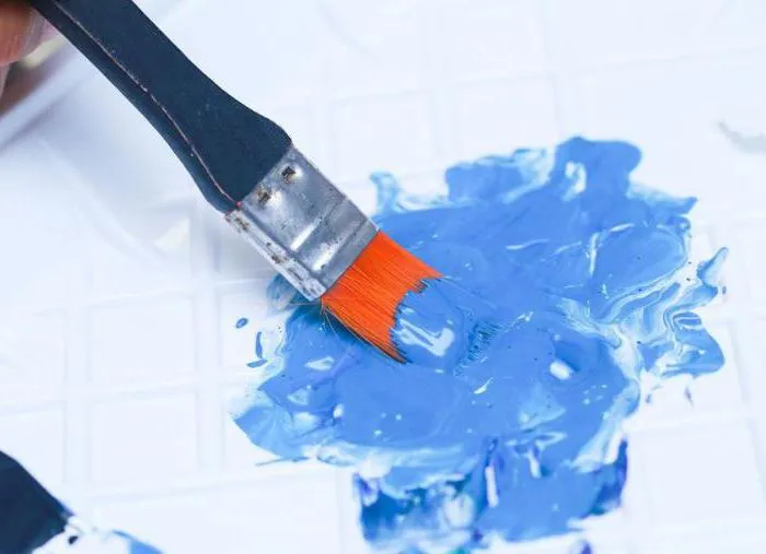 - На специальную дощечку нанесите определенную долю голубого цвета