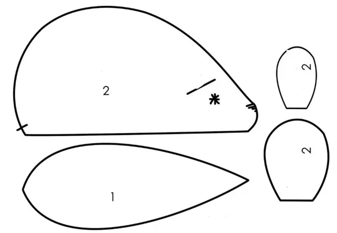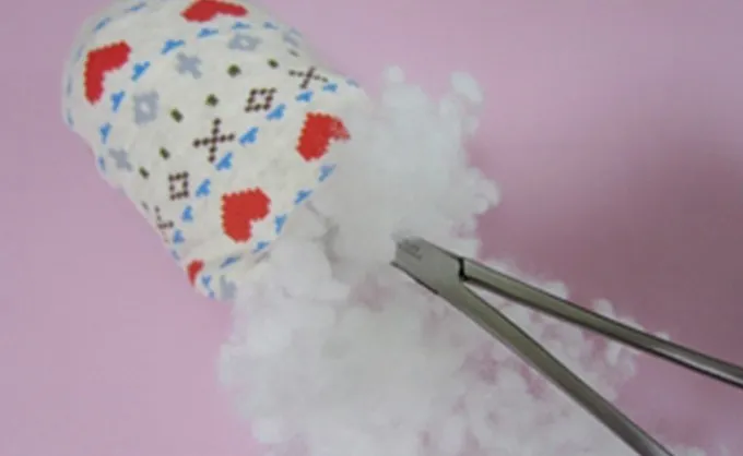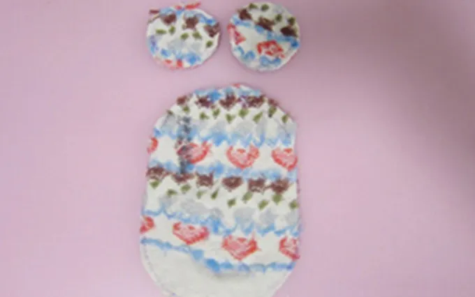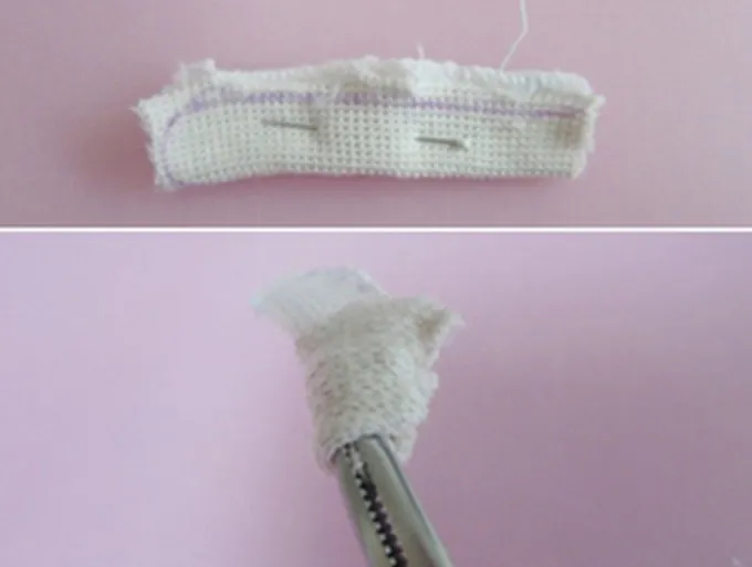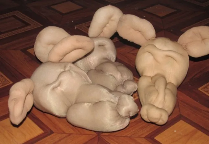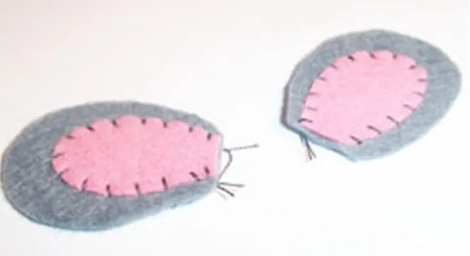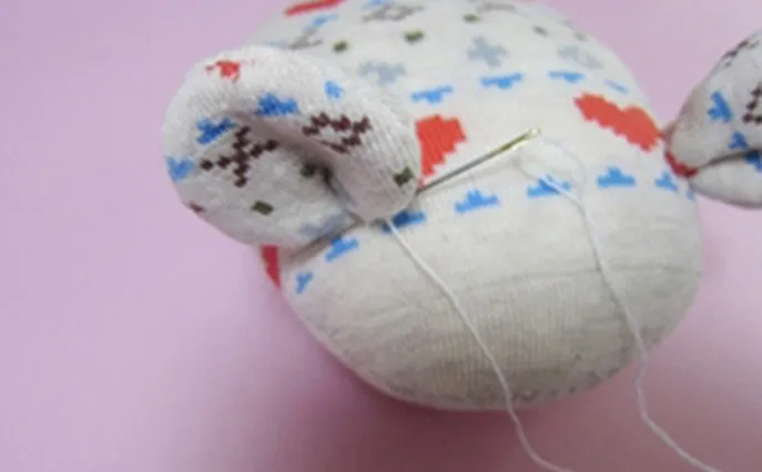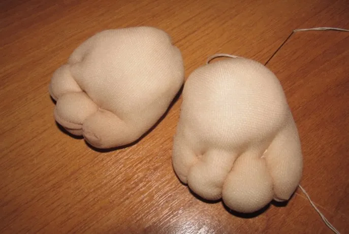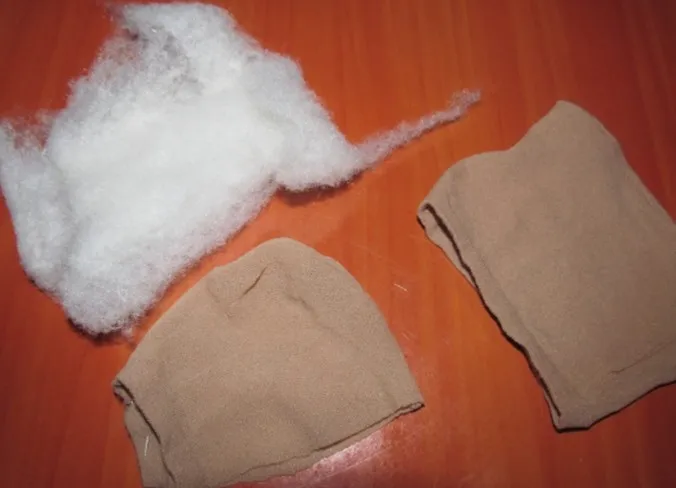 Из двух половинок капронового следка делаем ушки для одной головы. Их тоже набиваем синтепоном.