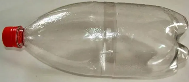 Поскольку бутылка слишком длинная, разрезаем ее пополам, укорачиваем каждую из частей, а затем снова соединяем их, вставив одну в другую.