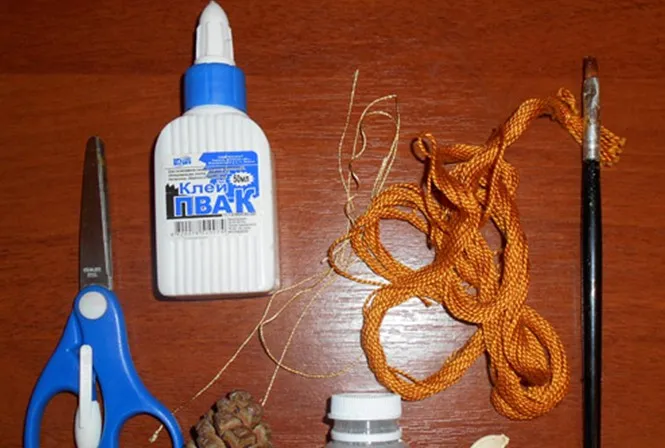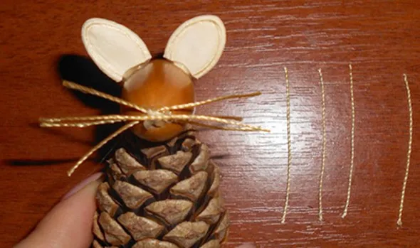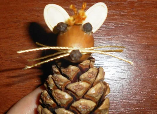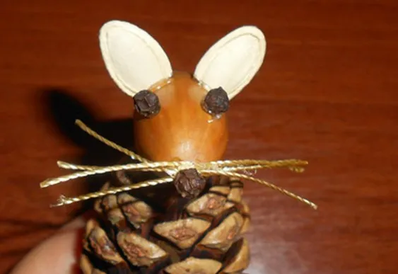 В качестве основы для игрушки используем сосновые шишки. Желательно, чтобы они были не очень большими, иначе туловища будут непропорциональны их головам из желудей.
