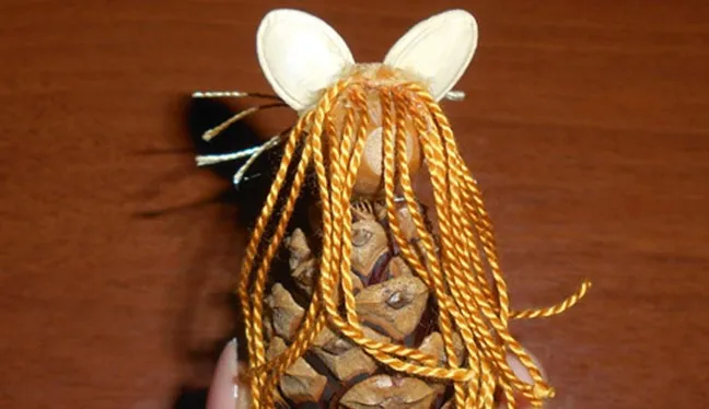 От ниток отрезаем небольшие кусочки. Сажаем их с помощью клея на заостренную часть желудя. Готовы усики!