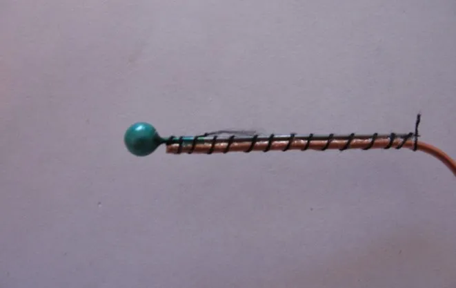 К концу проволоки, которая означает голову, приматываем булавку с шариком на конце. Предварительно смазываем ее “Моментом”. Нос на этом этапе можно сразу покрасить.