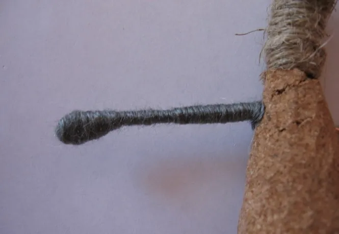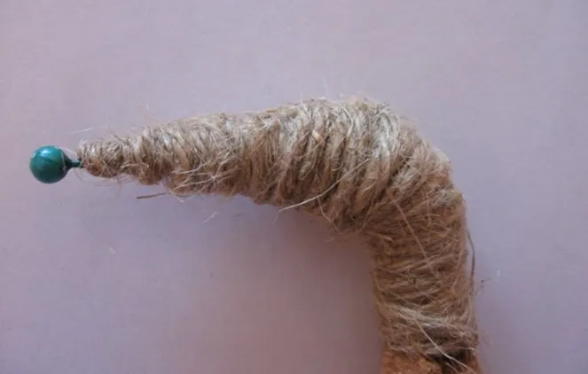 Продолжаем обмазывать проволоку клеем и в несколько слоев накручиваем на нее джутовый шпагат, придавая голове нужную форму.