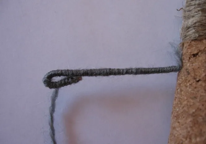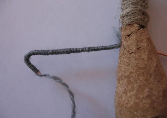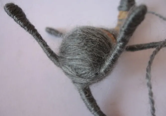 Ручки и ножки обматываем в один слой серой шерстяной ниткой.