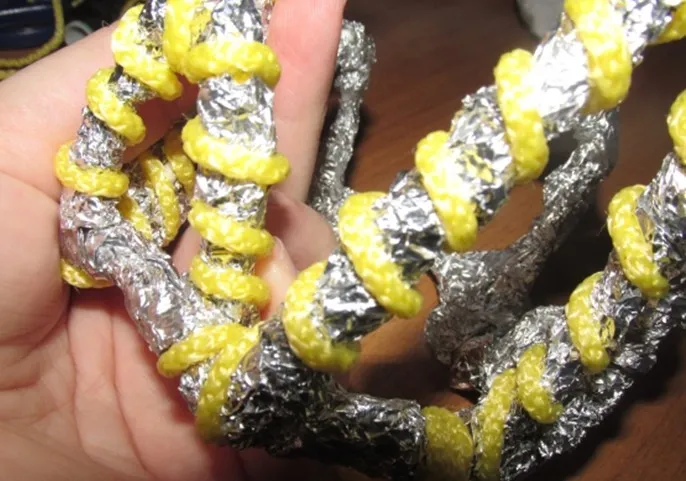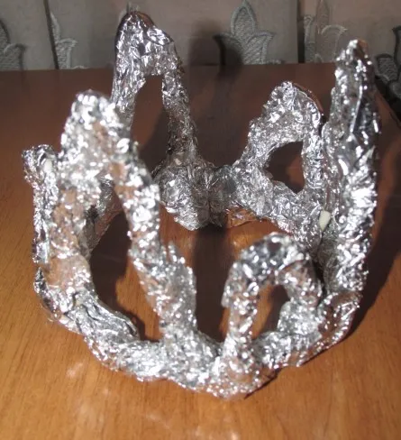 Основу короны делаем из проволоки. Обматываем ее фольгой в несколько слоев.