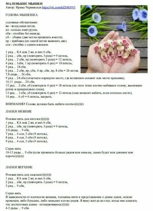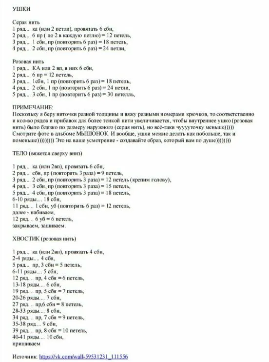 А теперь ловите парочку описаний в стиле амигуруми. А множество других наработок по теме вязаных игрушек-грызунов и в частности мышек, в найдете в моей другой статье, там их куча. Рекомендую познакомиться.