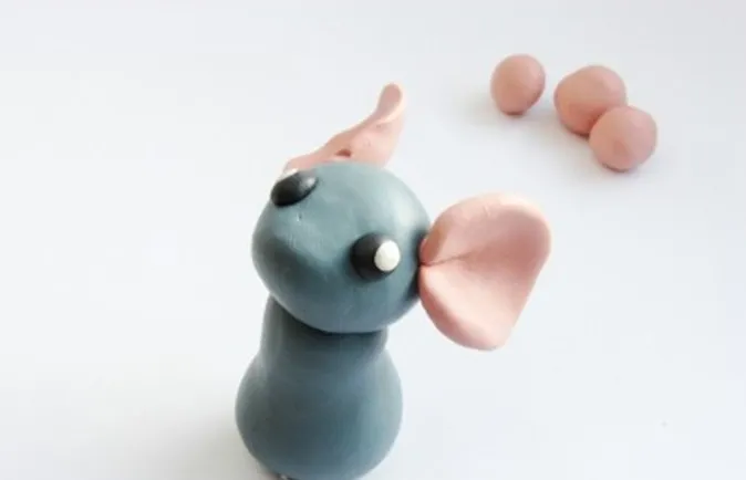 Головой будет шарик второго размера. Поскольку мордочка у мышонка остренькая, нужно придать шарику соответствующую форму.