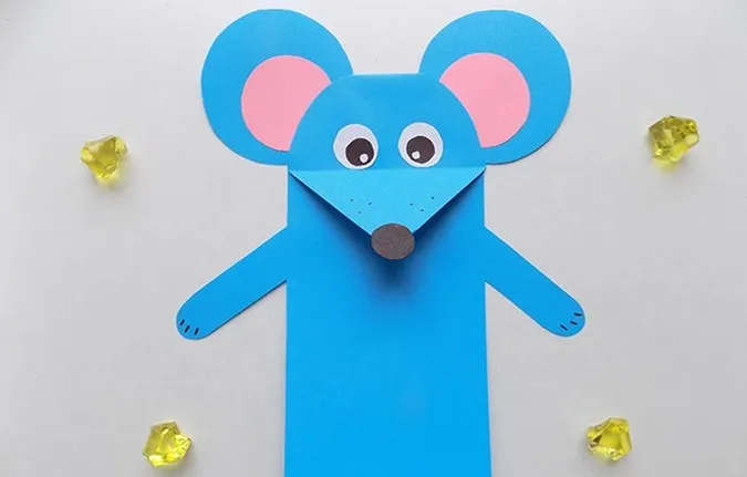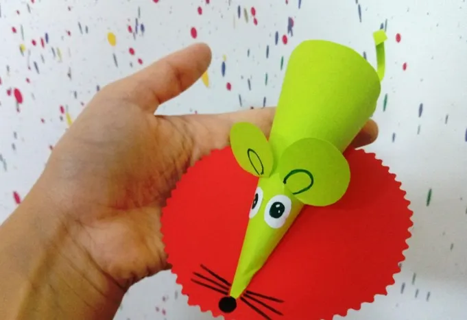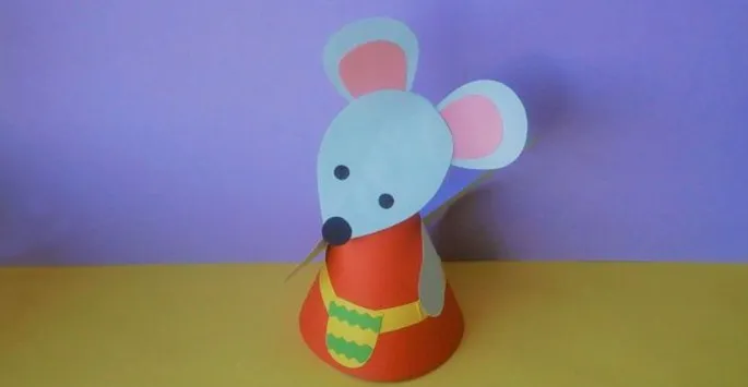 А этот вариант мышки — для самых-самых маленьких. Отличная идея для проведения урока в детском саду. Справиться с созданием такой поделки любой ребенок даже без помощи преподавателя. То, что нужно, для развития фантазии, мелкой моторики и самостоятельности.