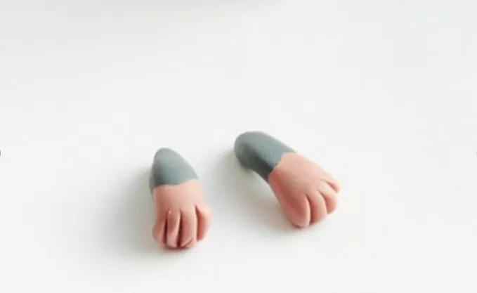 Осталось сделать ножки. Для этого делаем из фетра, драпа или другого материала, который мы используем, вот такие плотные рулетики.