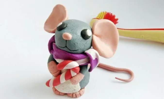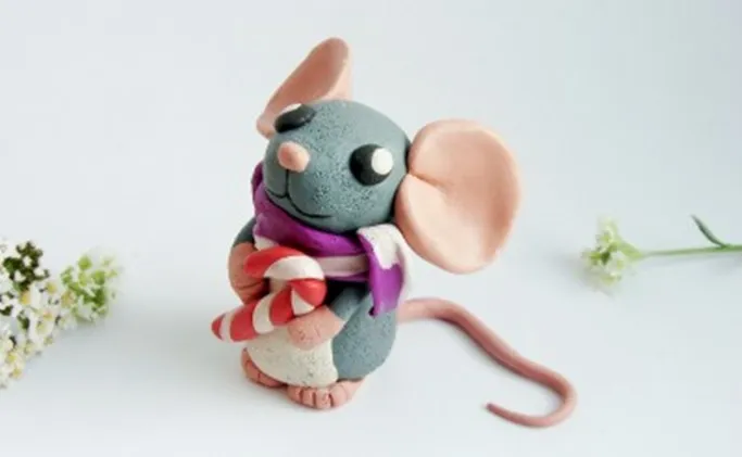Поделки из пластилина — тоже часто встречающийся вид творчества у детей детсадовского и младшего школьного возраста. Да что там, иногда и взрослые с удовольствием берутся за это занятие. В следующей пошаговой инструкции сделаем вот такого чудного мышонка и даже слепим для него новогодние атрибуты!