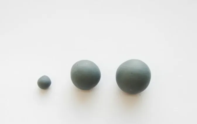 Разрезаем его на три части. Скатываем каждую в шарик.