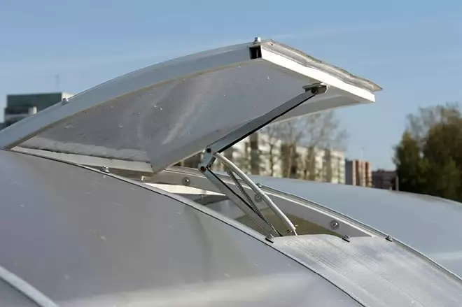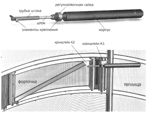 - Автомат – устройство. Автоматические форточки позволят сделать процесс вентиляции более эффективным. Автоматические окна при определенной температуре воздуха внутри тепличной конструкции самостоятельно открываются для создания вентиляции, а при падении температуры – постепенно закрываются. Но сделать автоматические окна сложнее, чем ручные.