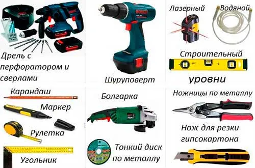 - ножницы по металлу, монтажный нож, электродрель + сверла 6 мм по металлу, кафелю и бетону и шуруповерт;