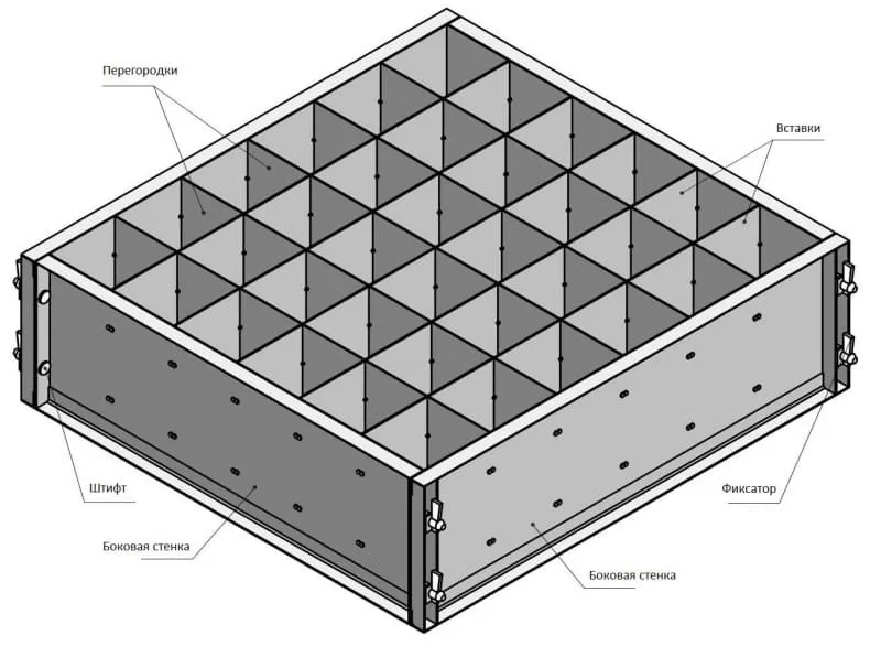 Схема-чертеж формы для пеноблоков и внешний вид показаны на