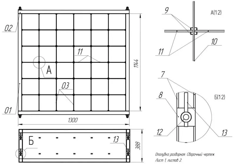 Схема-чертеж формы для пеноблоков (размеры элементов опалубки)