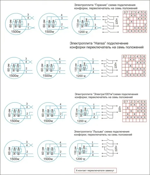Схемы подключения популярных плит