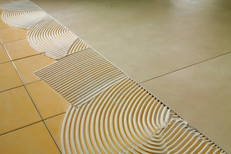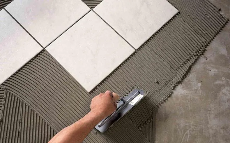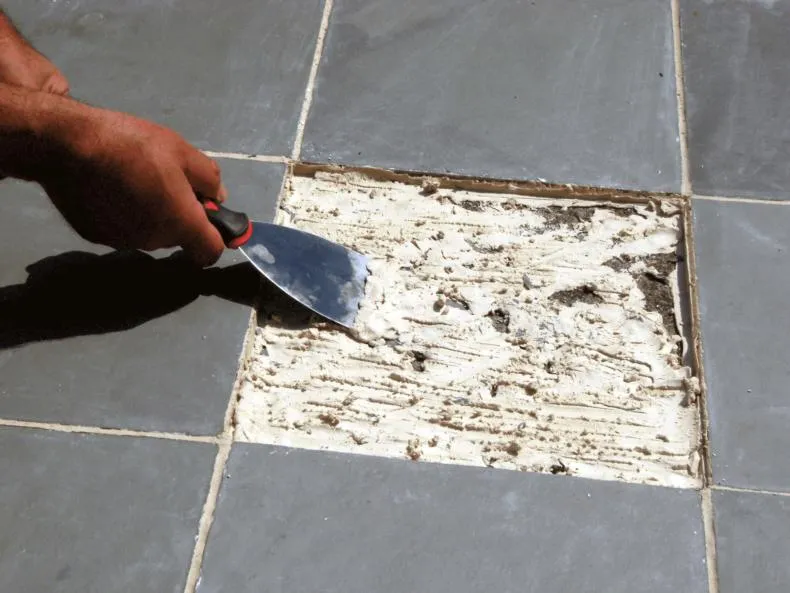 - Зачистка поверхностей от небольших сколов на старом полотне, либо трещин. Возможно удаление элементов целиком, с оставлением неповрежденных частей. Заполнение пустот клеевым раствором, потому как не должен присутствовать эффект воздушной подушки. Очищение поверхности старого материала от глянца, либо создание насечек, для лучшего сцепления друг с другом. Промывание плитки, обезжиривание, затем нанесение грунтового слоя. В качестве замены возможно аккуратное нанесение состава, включающего песок, цемент. Брызг на поверхности быть не должно.