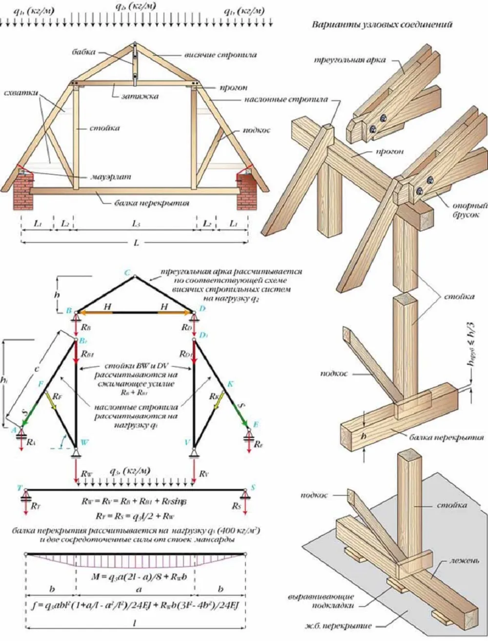 Геометрические параметры стропильной системы легко определяются на чертеже. Но чтобы разобраться с другими параметрами, придется обратиться к справочным материалам и выполнить некоторые расчеты.