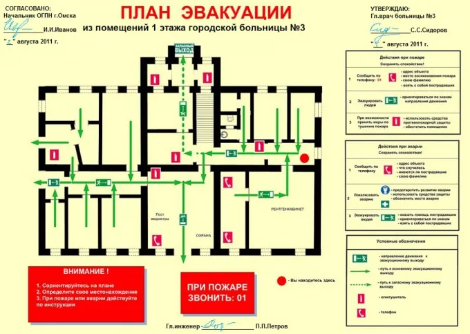 Согласно ГОСТ Р 12.2.143-2002, план эвакуации людей в случае пожара требует включения как графической, так и текстовой составляющей. Графическая часть должна учитывать особенности этажных планировок конкретного здания или сооружения, включая надежность, размеры и типы путей эвакуации.