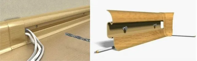 - скрытия проводов, уложенных в коробе внутри плинтуса;