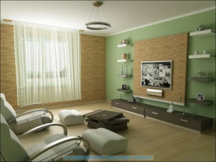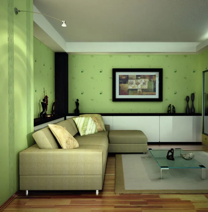 - Вторым лидером консультанты предлагают зеленый. Его коллекция насчитывает более сотни цветов с оливковым и мраморным оттенком. При творческом подходе из главного помещения квартиры можно создать уникальный шедевр.