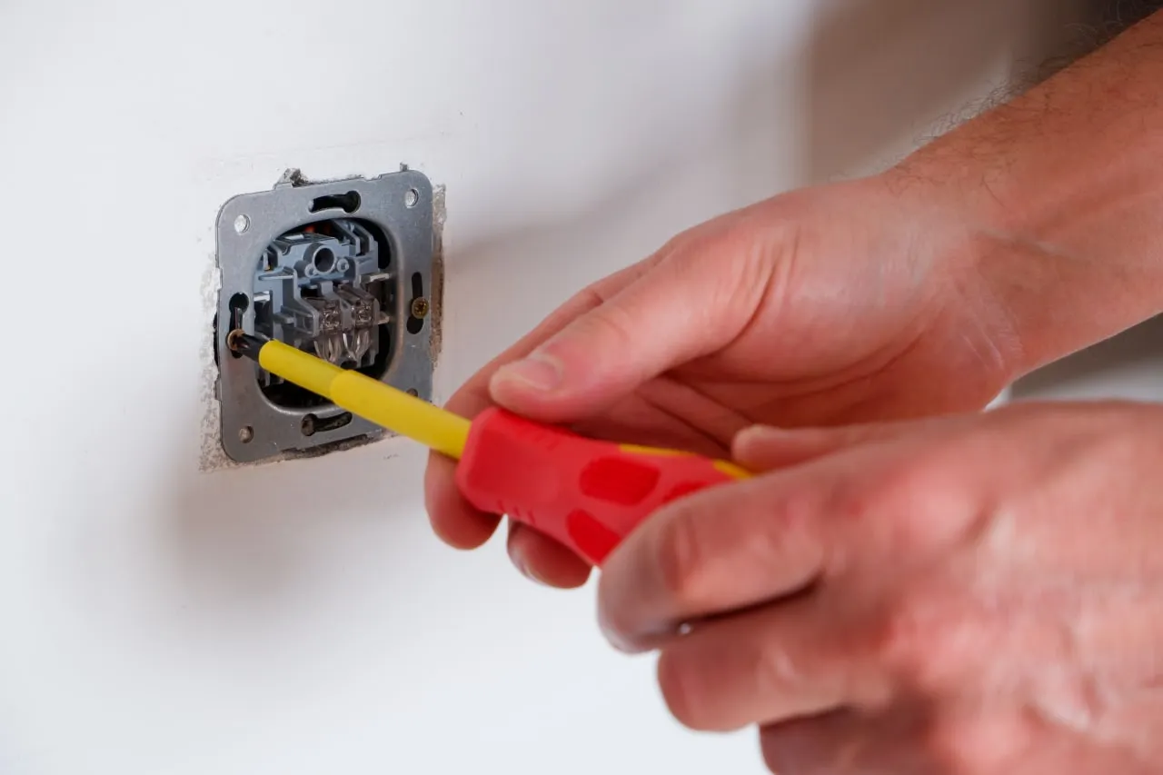 - Проверьте, действительно ли отключено электропитание, при помощи индикаторной отвертки, коснувшись ей одного из проводов в щитке. Если на индикаторе загорится красная лампочка, это означает, что питание не отключено. В таком случае вам точно придется вызывать электрика.