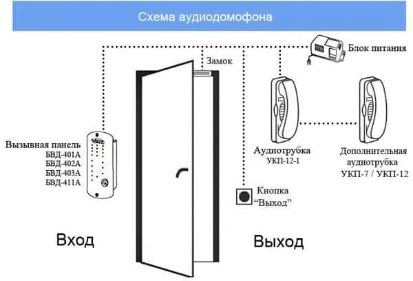 Для надежной идентификации посетителей используется аудио- или видеодомофон. Последний чаще устанавливается в частных коттеджах и создан для дополнительного визуального контроля пространства перед входной дверью. Что касается городских квартир в многоэтажных домах, то в них чаще устанавливается аудиовариант, в конструкцию которого включены следующие элементы: