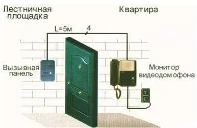 Также можно организовать более простое подключение, когда вызывное устройство монтируется непосредственно за входной квартирной дверью, как на картинке: