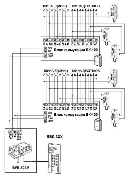 Схема подключения домофона координатно-матричного типа более простая надежная, поэтому пользуется большей популярностью. К координатному устройству связи подключен коммутатор, который при вызове переключает сигнал на конкретную трубку. Подключение производится при помощи проводов десяток и единиц, т. е., каждая квартира обозначена двумя кабелями, номера которых не повторяются. Чтобы установить связь, сигнал подается по линии DAT1 к коммутатору. После этого модулятор преображает и обрабатывает полученную информацию и подключается к одной определенной «Единице» и одному «Десятку». После благодаря электромагнитному реле по телефонной линии LIN происходит соединение с определенной квартирой.