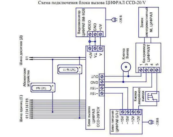 Принцип подключения домофона в квартире мало чем отличается от частного дома. Единственное, значительно увеличивается метраж кабелей, а также требуется специальная коммутационная аппаратура для связи всех абонентов с вызывной панелью. Теперь подробнее. Начнем традиционно со схемы: