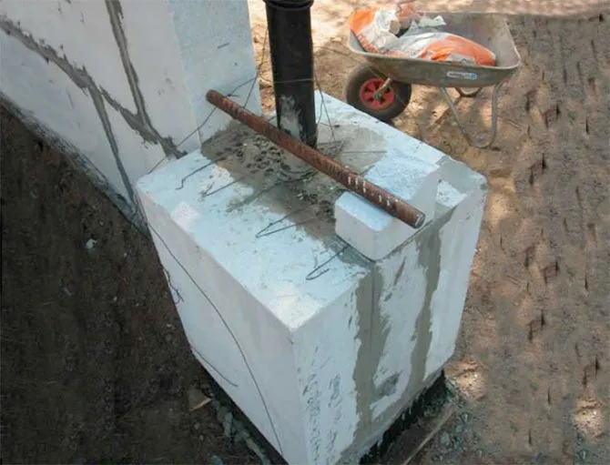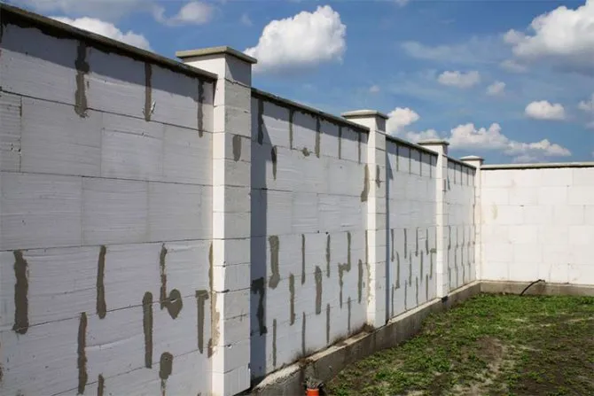 Несмотря на легкий вес блоков ограждение по своим размерам все равно получается габаритным и требует усиления в виде прочного долговечного фундамента.