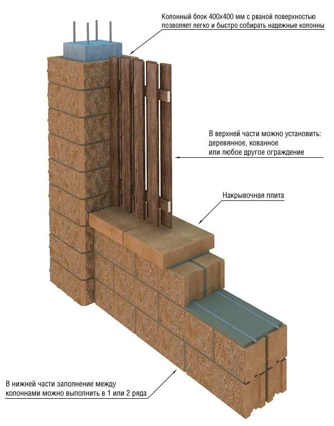 Преимущества и недостатки использования декоративных блоков для столбов забора из пеноблока