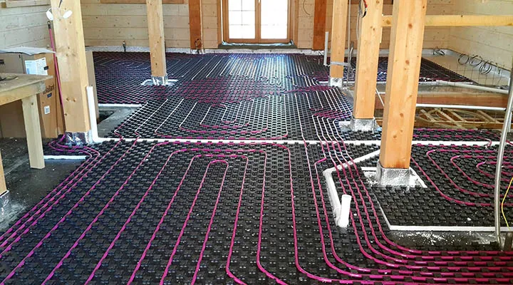 Существуют разные системы отопления полов: инфракрасные, электрические, водяные. Считается, что напольное водяное отопление идеально распределяет тепло, максимально подогревая нижнюю часть дома и сохраняя прохладу в верхней части помещения.