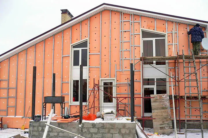 Весь принцип действия таких материалов предельно прост. Теплоизоляционный материал крепится на несущую конструкцию либо с применением клеевой смеси, либо креплением на армирующую сетку. После этого кладется штукатурка или облицовочный фасадный материал. Для прослойки фасадной стены можно использовать гибкие утеплители — например, каменную вату высокой плотности.