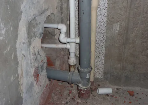 - Запертом служит проведение канализационных труб в потолке, стенах и полу жилых помещений.