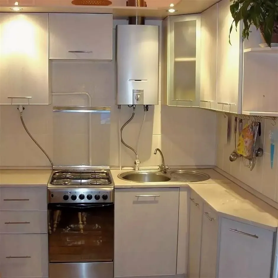 Маленькая кухня хрущевка 4 кв с газовой колонкой