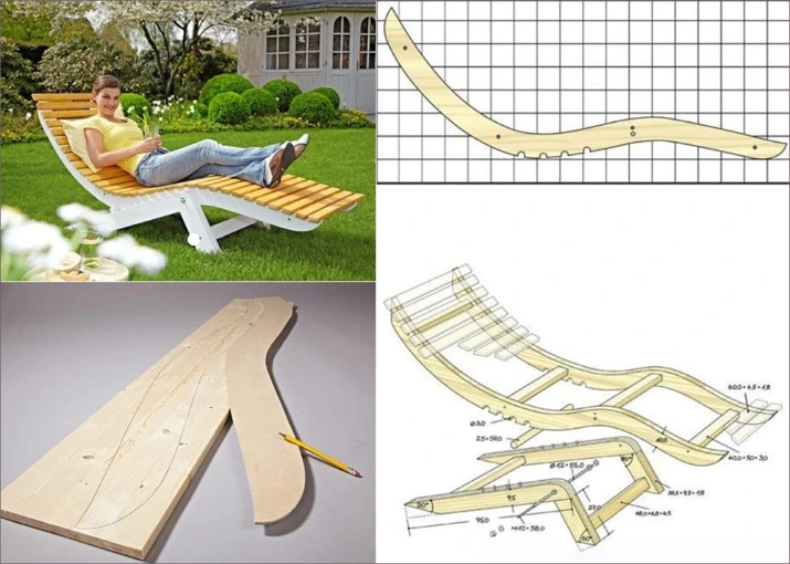 Изготовьте шезлонг обтекаемой формы, на котором будет комфортно лежать продолжительное время. Каркас следует выполнить из древесины. Лежак можно будет обшить дополнительно тканью или надеть съемный чехол.