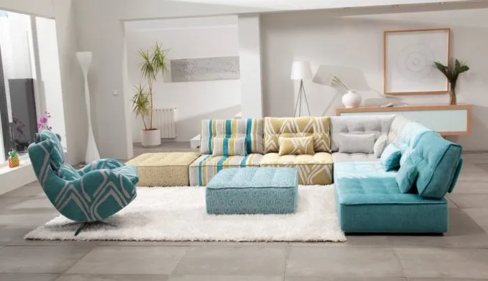 Модульная мебель – это модель, состоящая из нескольких элементов (диван, кресла, пуфы), которые можно использовать как вместе, так отдельно. Подобное решение подходит для оформления как для больших, так маленьких гостиных.