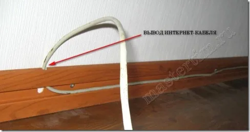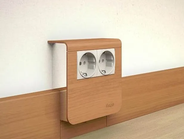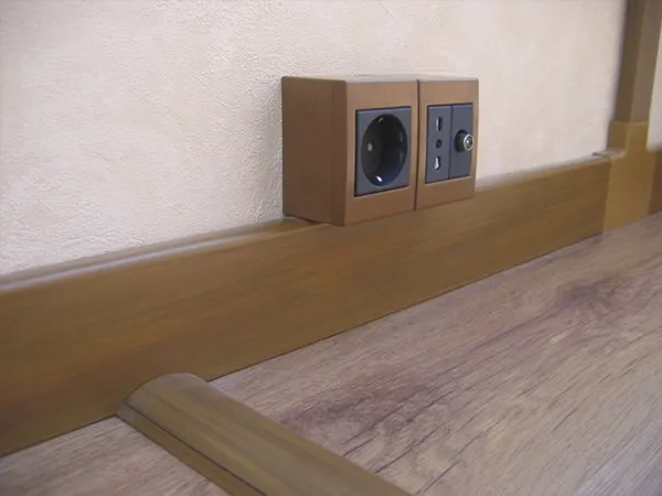 6. В местах где нам нужно вывести провода на свет нам придется просверлить (продырявить) наш плинтус. Хорошо бы конечно вставить в таких местах спец.розетки, но едва ли вы встретите их в продаже. Есть серии интерьерных кабель-каналов с возможностью подключения различного электрооборудования и сетей, но это уже другой случай, такой монтаж осуществляется как правило при отсутствии стационарных электророзеток.