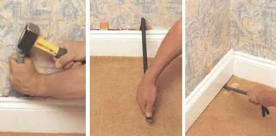 Если плинтуса прибиты или приклеены, чтобы снять их, вам потребуются инструменты: