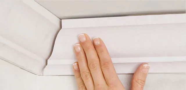 Самый лучший, но и самый дорогой потолочный/напольный плинтус для радиусного угла изготовлен из полиуретана – это можно даже завязать в узел, и при этом поверхность не будет повреждена. Несмотря на то, что цена такого удовольствия выше, нежели у аналогов, специальный паз для прокладывания коммуникаций в нем не предусмотрен, хоть и есть возможность уложить один провод в углу сопряжения плоскости. Такие профили можно установить или на клей, или на шлатлевку гипсового типа, все зависит от поверхности отделки.